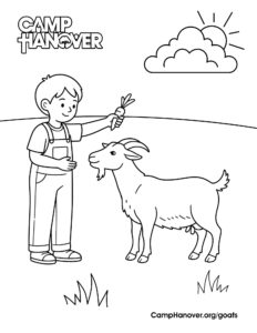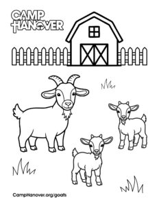 You can find Camp Hanover’s goats in one of two pens in the field between the garden and the pollinator meadow. They also get time to range around the field outside their pen. While roaming, the goats enjoy nibbling on grasses and tree leaves.