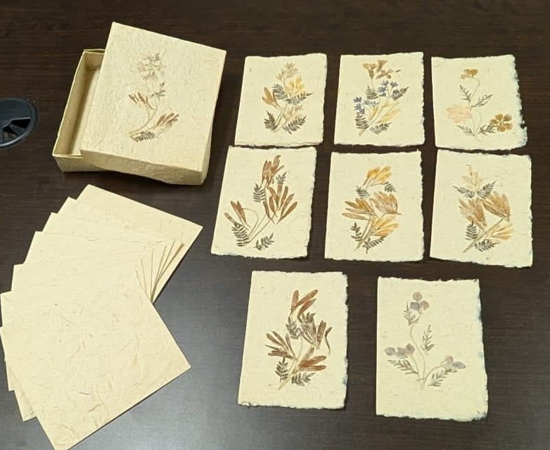 8-count hand-made paper notecards with exquisite pressed flowers